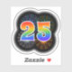 This fun, vibrant sticker design features a colourful bursting celebratory fireworks inspired pattern, along with the number "25" having a multicolored rainbow like spectrum or gradient pattern. A sticker like this might be fun to use when celebrating somebody’s twenty fifth birthday, or perhaps a couple’s twenty fifth wedding anniversary, or some other 25th event. [~Z0000362]