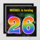 This fun, vibrant birthday party invitation design features a colourful pattern inspired by bursting celebratory fireworks, along with the number "26" featuring a multicolored rainbow like spectrum or gradient pattern. The name on the front can be customised. The back features customisable details about the party. Birthday party invitations like this might be sent to invite guests to a birthday party being held to celebrate somebody’s twenty sixth birthday. [~Z0000337]