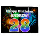 This fun, vibrant gift bag design features a colourful celebratory fireworks inspired pattern, along with the number "28" having a multicolored rainbow like gradient pattern, on a black coloured background. It also features a personalised name and event message, such as a birthday greeting. A gift bag like this might be used to wrap a present or gift being given in celebration of somebody’s twenty eighth birthday. [~Z0000328]