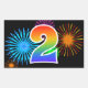 Fun Fireworks + Rainbow Pattern "2" Event Number Rectangular Sticker