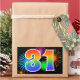 This fun, vibrant sticker design features a colourful pattern inspired by celebratory fireworks, along with the number "31" having a multicolored rainbow like gradient pattern, on a black coloured background. Stickers like this might be given as a small gift while celebrating somebody’s thirty first birthday, or perhaps for a couple’s thirty first wedding anniversary, or some other 31st event. [~Z0000324]