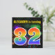 This fun, vibrant birthday party invitation design features a colourful pattern inspired by bursting celebratory fireworks, along with the number "32" having a multicolored rainbow like spectrum or gradient pattern. The name on the front can be customised. The back features custom details about the party. Birthday party invitations like this might be sent to invite guests to a birthday party being held to celebrate somebody’s thirty second birthday. [~Z0000337]