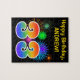 This fun, vibrant puzzle design features a colourful celebratory fireworks inspired pattern, along with the number "33" having a multicolored rainbow inspired gradient pattern, on a black coloured background. It also features a customisable name and event message, such as a birthday greeting. A puzzle like this might be a fun way to send a birthday message to acknowledge somebody’s thirty third birthday. [~Z0000329]