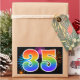 This fun, vibrant sticker design features a colourful pattern inspired by celebratory fireworks, along with the number "35" featuring a multicolored rainbow like gradient pattern, on a black coloured background. Stickers like this might be given as a small gift while celebrating somebody’s thirty fifth birthday, or perhaps for a couple’s thirty fifth wedding anniversary, or some other 35th event. [~Z0000324]