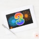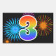 Fun Fireworks + Rainbow Pattern "3" Event Number Rectangular Sticker