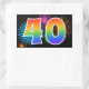 Fun Fireworks + Rainbow Pattern "40" Event Number Rectangular Sticker