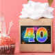 This fun, vibrant sticker design features a colourful celebratory fireworks inspired pattern, along with the number "40" having a multicolored rainbow inspired gradient pattern, on a black coloured background. Stickers like this might be used at a party celebrating somebody’s fortieth birthday, or perhaps for a couple’s fortieth wedding anniversary, or some other 40th event. [~Z0000324]
