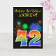 Fun Fireworks + Rainbow Pattern "42" Birthday # Card