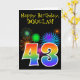 Fun Fireworks + Rainbow Pattern "43" Birthday # Card