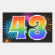 Fun Fireworks + Rainbow Pattern "43" Event Number Rectangular Sticker