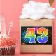This fun, vibrant sticker design features a colourful pattern inspired by celebratory fireworks, along with the number "43" having a multicolored rainbow inspired gradient pattern, on a black coloured background. Stickers like this could perhaps be given as a small gift while celebrating somebody’s forty third birthday, or perhaps for a couple’s forty third wedding anniversary, or some other 43rd event. [~Z0000324]