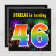 This fun, vibrant birthday party invitation design features a colourful pattern inspired by bursting celebratory fireworks, along with the number "46" featuring a multicolored rainbow inspired spectrum or gradient pattern. The name on the front can be customised. The back features customisable details about the party. Birthday party invitations like this might be sent to potential guests for a birthday party being held to celebrate somebody’s forty sixth birthday. [~Z0000337]