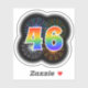 This fun, vibrant sticker design features a colourful pattern inspired by bursting celebratory fireworks, along with the number "46" having a multicolored rainbow inspired spectrum or gradient pattern. A sticker like this might perhaps be used when celebrating somebody’s forty sixth birthday, or perhaps a couple’s forty sixth wedding anniversary, or some other 46th event. [~Z0000362]