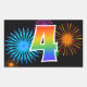 Fun Fireworks + Rainbow Pattern "4" Event Number Rectangular Sticker