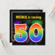 This fun, vibrant birthday party invitation design features a colourful pattern inspired by bursting celebratory fireworks, along with the number "50" having a multicolored rainbow inspired spectrum or gradient pattern. The name on the front can be personalised. The back features custom details about the party. Birthday party invitations like this might be sent to invite guests to a birthday party being held to celebrate somebody’s fiftieth birthday. [~Z0000337]