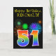 Fun Fireworks + Rainbow Pattern "51" Birthday # Card