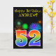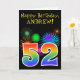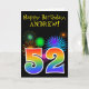 Fun Fireworks + Rainbow Pattern "52" Birthday # Card