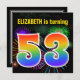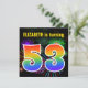 This fun, vibrant birthday party invitation design features a colourful pattern inspired by bursting celebratory fireworks, along with the number "53" having a multicolored rainbow like spectrum or gradient pattern. The name on the front can be personalised. The back features customisable details about the party. Birthday party invitations like this might be sent to potential guests for a birthday party being held to celebrate somebody’s fifty third birthday. [~Z0000337]