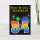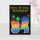 Fun Fireworks + Rainbow Pattern "54" Birthday # Card
