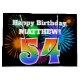 This fun, vibrant gift bag design features a colourful celebratory fireworks inspired pattern, along with the number "54" featuring a multicolored rainbow like gradient pattern, on a black coloured background. It also features a personalised name and event message, such as a birthday greeting. A colourful and joyful gift bag like this might be used when giving a gift or present to somebody who is celebrating their fifty fourth birthday. [~Z0000328]