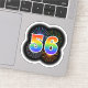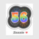 This fun, exciting sticker design features a colourful bursting celebratory fireworks inspired pattern, along with the number "56" featuring a multicolored rainbow like spectrum or gradient pattern. An exciting sticker like this might be used when celebrating somebody’s fifty sixth birthday, or perhaps a couple’s fifty sixth wedding anniversary, or some other 56th event. [~Z0000362]