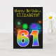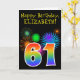Fun Fireworks + Rainbow Pattern "61" Birthday # Card