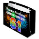 This fun, vibrant gift bag design features a colourful pattern inspired by celebratory fireworks, along with the number "61" having a multicolored rainbow inspired gradient pattern, on a black coloured background. It also features a personalised name and event message, such as a birthday greeting. A gift bag like this might be used to wrap a present or gift being given in celebration of somebody’s sixty first birthday. [~Z0000328]