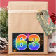 This fun, vibrant sticker design features a colourful celebratory fireworks inspired pattern, along with the number "63" featuring a multicolored rainbow inspired gradient pattern, on a black coloured background. Stickers like this might be given as a small gift while celebrating somebody’s sixty third birthday, or perhaps for a couple’s sixty third wedding anniversary, or some other 63rd event. [~Z0000324]
