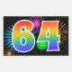 Fun Fireworks + Rainbow Pattern "64" Event Number Rectangular Sticker