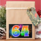 This fun, vibrant sticker design features a colourful celebratory fireworks inspired pattern, along with the number "64" featuring a multicolored rainbow inspired gradient pattern, on a black coloured background. Stickers like this might be used at a party celebrating somebody’s sixty fourth birthday, or perhaps for a couple’s sixty fourth wedding anniversary, or some other 64th event. [~Z0000324]