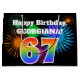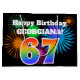 This fun, vibrant gift bag design features a colourful celebratory fireworks inspired pattern, along with the number "67" having a multicolored rainbow like gradient pattern, on a black coloured background. It also features a custom name and event message, such as a birthday greeting. A fun gift bag like this could be used when wrapping a present or gift being given in celebration of somebody’s sixty seventh birthday. [~Z0000328]