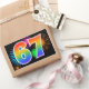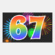 Fun Fireworks + Rainbow Pattern "67" Event Number Rectangular Sticker