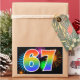 This fun, vibrant sticker design features a colourful pattern inspired by celebratory fireworks, along with the number "67" featuring a multicolored rainbow like gradient pattern, on a black coloured background. Stickers like this could perhaps be given as a small gift while celebrating somebody’s sixty seventh birthday, or perhaps for a couple’s sixty seventh wedding anniversary, or some other 67th event. [~Z0000324]