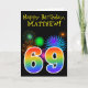 Fun Fireworks + Rainbow Pattern "69" Birthday # Card