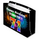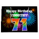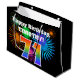This fun, vibrant gift bag design features a colourful pattern inspired by celebratory fireworks, along with the number "71" having a multicolored rainbow inspired gradient pattern, on a black coloured background. It also features a personalised name and event message, such as a birthday greeting. A gift bag like this might be used to wrap a present or gift being given in celebration of somebody’s seventy first birthday. [~Z0000328]