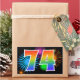 This fun, vibrant sticker design features a colourful pattern inspired by celebratory fireworks, along with the number "74" having a multicolored rainbow inspired gradient pattern, on a black coloured background. Stickers like this could perhaps be used at a party celebrating somebody’s seventy fourth birthday, or perhaps for a couple’s seventy fourth wedding anniversary, or some other 74th event. [~Z0000324]