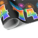 This fun, vibrant wrapping paper design features a colourful celebratory fireworks inspired pattern, along with the number "74" featuring a multicolored rainbow inspired gradient pattern, on a black coloured background. Wrapping paper like this could perhaps be used when wrapping presents or gifts being given for somebody’s seventy fourth birthday, or perhaps for a couple’s seventy fourth wedding anniversary, or some other 74th event. [~Z0000322]