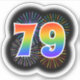 This fun, vibrant sticker design features a colourful bursting celebratory fireworks inspired pattern, along with the number "79" featuring a multicolored rainbow like spectrum or gradient pattern. A fun sticker like this might be fun to use when celebrating somebody’s seventy ninth birthday, or perhaps a couple’s seventy ninth wedding anniversary, or some other 79th event. [~Z0000362]