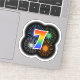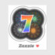 This fun, exciting sticker design features a colourful bursting celebratory fireworks inspired pattern, along with the number "7" having a multicolored rainbow inspired spectrum or gradient pattern. A sticker like this might be used when celebrating somebody’s seventh birthday, or perhaps a couple’s seventh wedding anniversary, or some other 7th event. [~Z0000362]