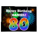 This fun, vibrant gift bag design features a colourful celebratory fireworks inspired pattern, along with the number "80" having a multicolored rainbow inspired gradient pattern, on a black coloured background. It also features a personalised name and event message, such as a birthday greeting. A fun gift bag like this could be used when wrapping a present or gift being given in celebration of somebody’s eightieth birthday. [~Z0000328]