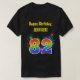 This fun, vibrant shirt design features a colourful bursting celebratory fireworks inspired pattern, along with the number "82" having a multicolored rainbow inspired spectrum or gradient pattern. It also features a customisable name and event message, such as a "Happy Birthday" birthday greeting. A shirt like this might be worn by the guests at a birthday party being held to celebrate somebody’s eighty second birthday. [~Z0000332]