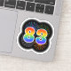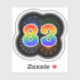 This fun, exciting sticker design features a colourful bursting celebratory fireworks inspired pattern, along with the number "83" having a multicolored rainbow like spectrum or gradient pattern. An exciting sticker like this might perhaps be used when celebrating somebody’s eighty third birthday, or perhaps a couple’s eighty third wedding anniversary, or some other 83rd event. [~Z0000362]