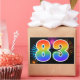 This fun, vibrant sticker design features a colourful pattern inspired by celebratory fireworks, along with the number "83" featuring a multicolored rainbow inspired gradient pattern, on a black coloured background. Stickers like this could perhaps be given as a small gift while celebrating somebody’s eighty third birthday, or perhaps for a couple’s eighty third wedding anniversary, or some other 83rd event. [~Z0000324]