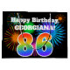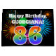 This fun, vibrant gift bag design features a colourful celebratory fireworks inspired pattern, along with the number "86" featuring a multicolored rainbow like gradient pattern, on a black coloured background. It also features a personalised name and event message, such as a birthday greeting. A colourful gift bag like this might be used when wrapping a gift or present that is being given in celebration of somebody’s eighty sixth birthday. [~Z0000328]