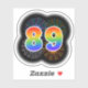 This fun, vibrant sticker design features a colourful bursting celebratory fireworks inspired pattern, along with the number "89" featuring a multicolored rainbow inspired spectrum or gradient pattern. A fun sticker like this might be used when celebrating somebody’s eighty ninth birthday, or perhaps a couple’s eighty ninth wedding anniversary, or some other 89th event. [~Z0000362]