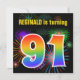 Fun Fireworks + Rainbow Pattern "91" Birthday # Invitation