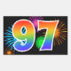 Fun Fireworks + Rainbow Pattern "97" Event Number Rectangular Sticker