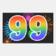 Fun Fireworks + Rainbow Pattern "99" Event Number Rectangular Sticker