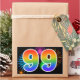 This fun, vibrant sticker design features a colourful pattern inspired by celebratory fireworks, along with the number "99" having a multicolored rainbow inspired gradient pattern, on a black coloured background. Stickers like this could perhaps be used at a party celebrating somebody’s ninety ninth birthday, or perhaps for a couple’s ninety ninth wedding anniversary, or some other 99th event. [~Z0000324]
