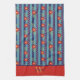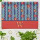 Fun Floral Stripe Stylish Custom Initial Last Name Tea Towel